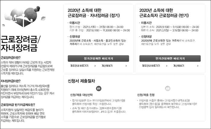 | 근로장려금 계산하기 | 5차 재난지원금 신청 | 청년내일채움공제 신청 | 중소기업 소득세 감면 |