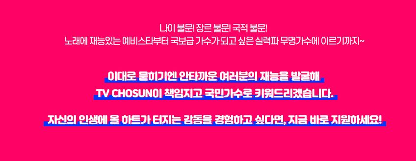 TV CHOSUN이 책임지고 국민가수로 키워드리겠습니다.