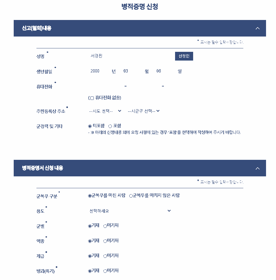 병역증명서 인터넷 발급 받기